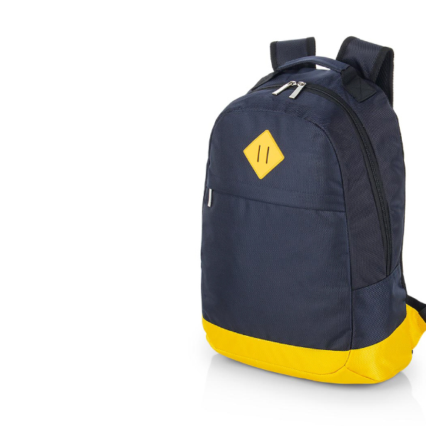 Capacidad 12 litros. Poliester 300D Wulong, interior poliester 210 D. Mochila. Compartimento principal con bolsillo porta notebook, dos bolsillos pequeños y dos portabolígrafos. En la parte exterior dos bolsillos amplios con cierre. Porta bebida lateral. Cierres con detalles de goma. Tiras de la mochila regulables y acolchonadas.